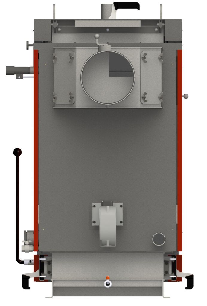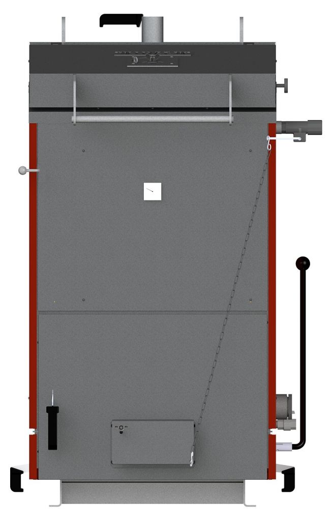 - ручка регулювання клапаном прямої тяги виведена для зручності на передню стінку котла