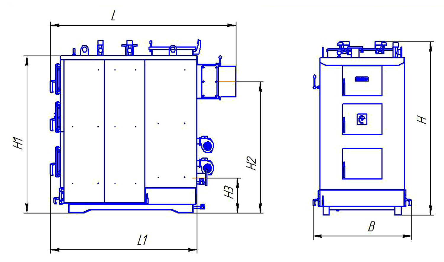 OVERALL DIMENSIONS OF THE KP 150 KW BOILER