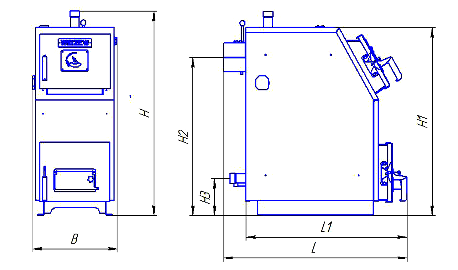 OVERALL DIMENSIONS OF THE KV 12-16 KW BOILER